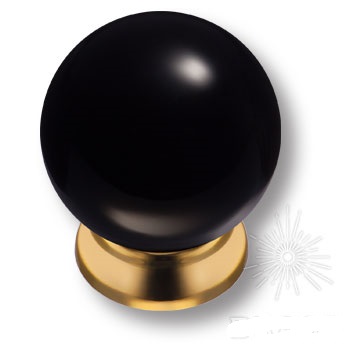 Ручка кнопка 5101-133, материал Замак Пластик, цвет Черный, отделка Золото Пластик Черный, d=34 мм