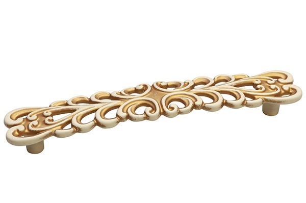 Ручка скоба WMN.723X.128.M00T5, материал Замак, отделка Золотая патина Слоновая кость Золото, 156*28*25 мм